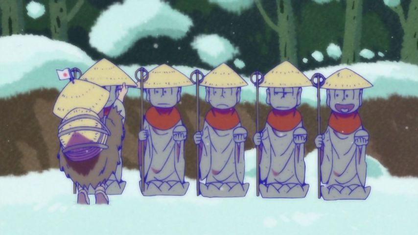 「おそ松さん2期」アニメ13話をバンダイチャンネル見放題で見た。ショートアニメの連作?年末年始らしいネタが多いけども。ときどきブラック…。傘地蔵がホラーになってる…。あれ?トド松がいない?と思ったらそういうことかー。ラストがなんとも…。