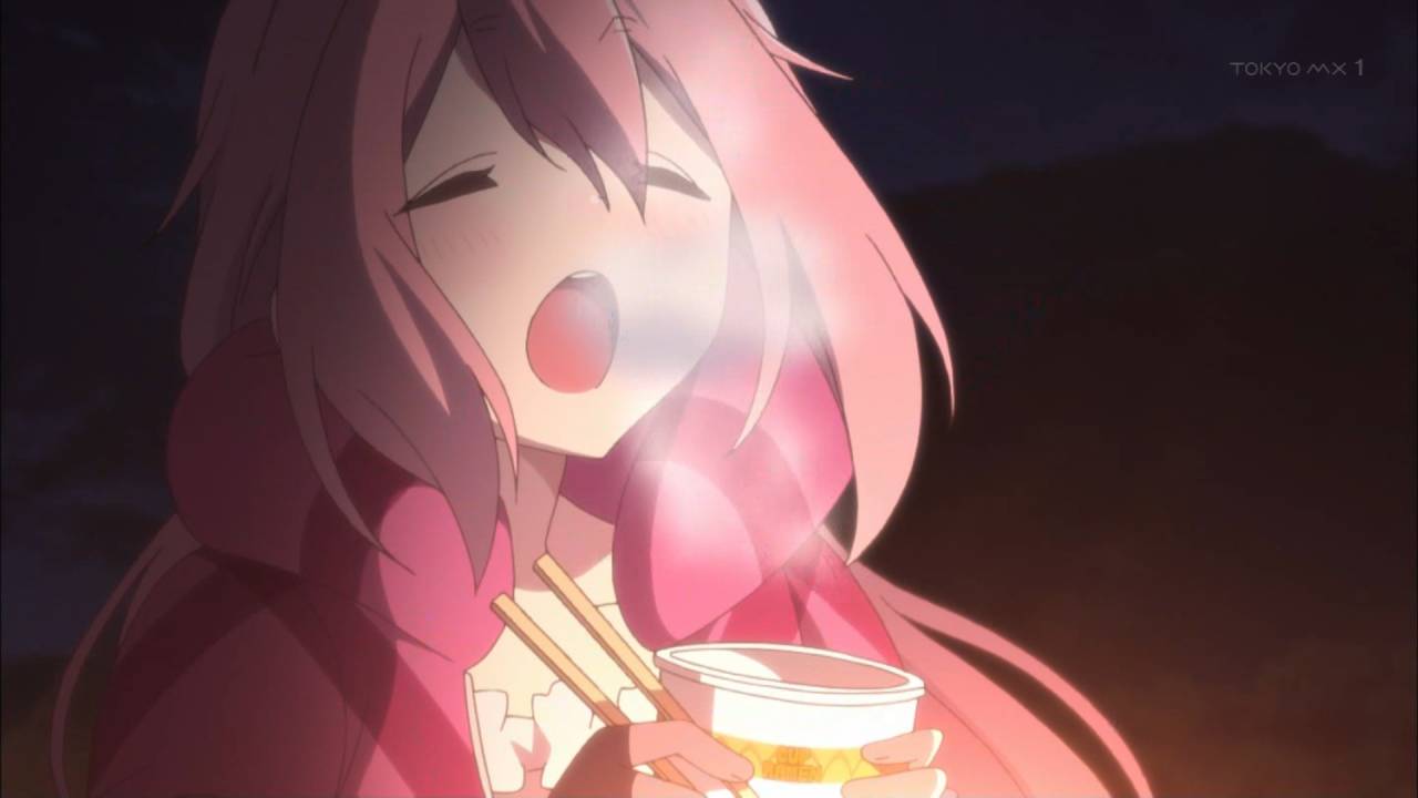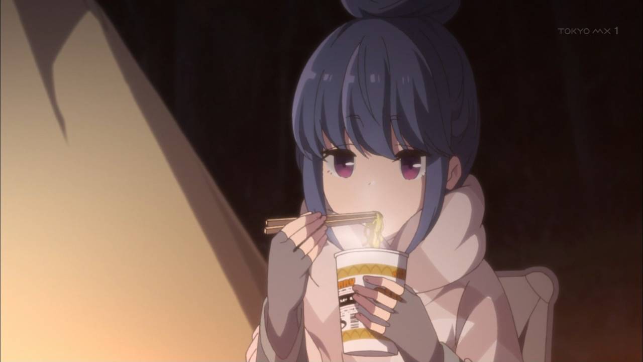 そして、こんな時間にカップ麺食べるの見ると腹が減る~(>_<) #ゆるキャン