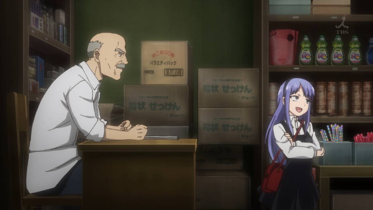 「だがしかし2」第3話:栄枯盛衰とは悲しい物で、駄菓子屋はどんどん姿を消している。どこででもどんな方法でも買える現代だからこそ、そこに足を運ばせる事が重要だし、一番むつかしい。それにしても、黒ストッキングに黒スカートの二重構造とか、ほたるさんは夏場暑くないんですか・・・?