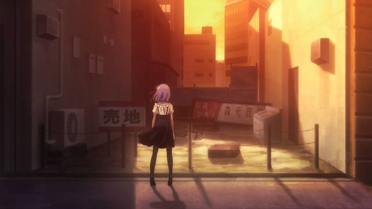 だがしかし2第3話。幼い日に通った思い出の駄菓子屋の跡地を訪れたほたるさん。シャッター通りと化した夕暮れの商店街を歩く姿は何か切ない。ココノツに駄菓子屋を継がせたい理由は、ヨウを引き抜くためだと語ってるけど、思い出の風景と似たものを残したいというのもあるのかも #だがしかし