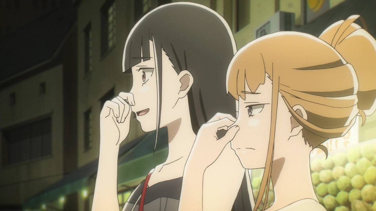宇宙よりも遠い場所 第6話観た。報瀬と日向。あの一人でなんでもやろうとしてた報瀬ちゃんが「4人で」というのがもう最高で最高で滅茶苦茶感動してからのこのオチだよ!前に電車でも仲良くなってたし百合相性良さそうなふたりだ #よりもい #tokyoMX