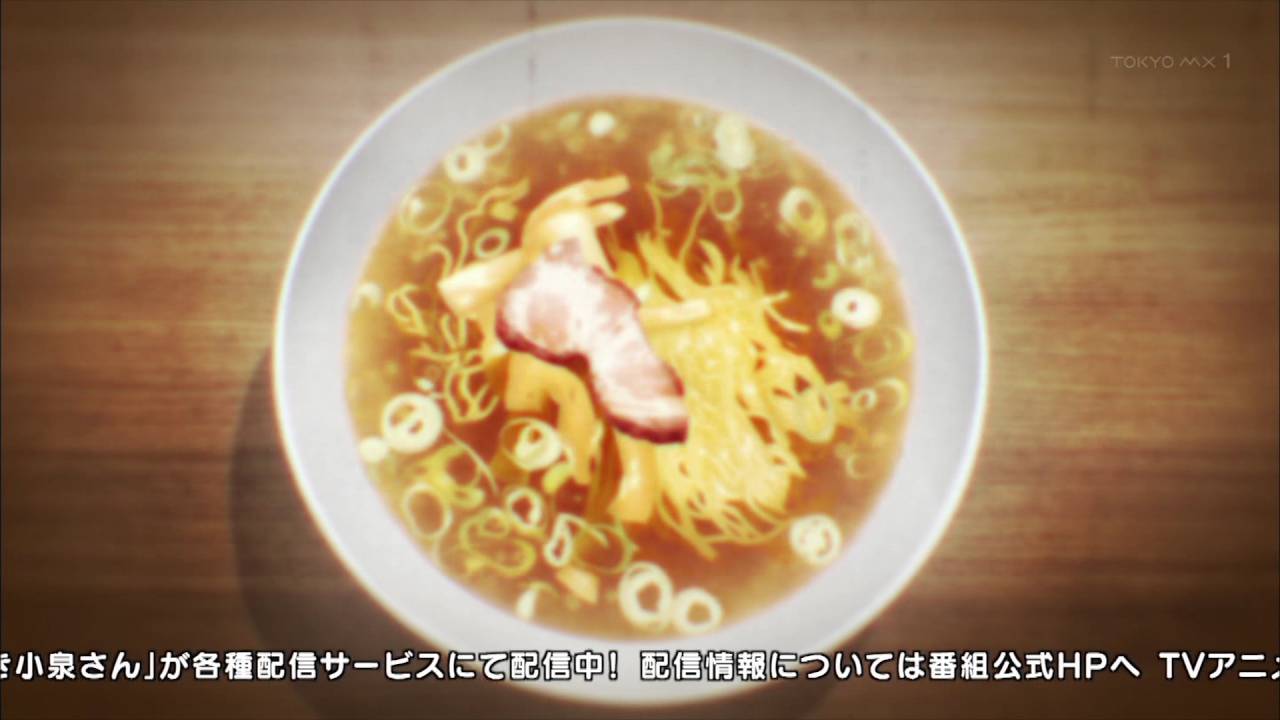 原作者も楽しみにしていたというアニオリ回。浅草で全国のラーメンを食べまくる展開。Aパはチラチラ見切る小泉さんがかわいい。Bパは小泉さんと一緒に廻る悠の楽しげな顔が印象的だ。しかしサラッと伊藤さんを出してくる辺り、よく取材しているなと感心する。 #ramen_anime