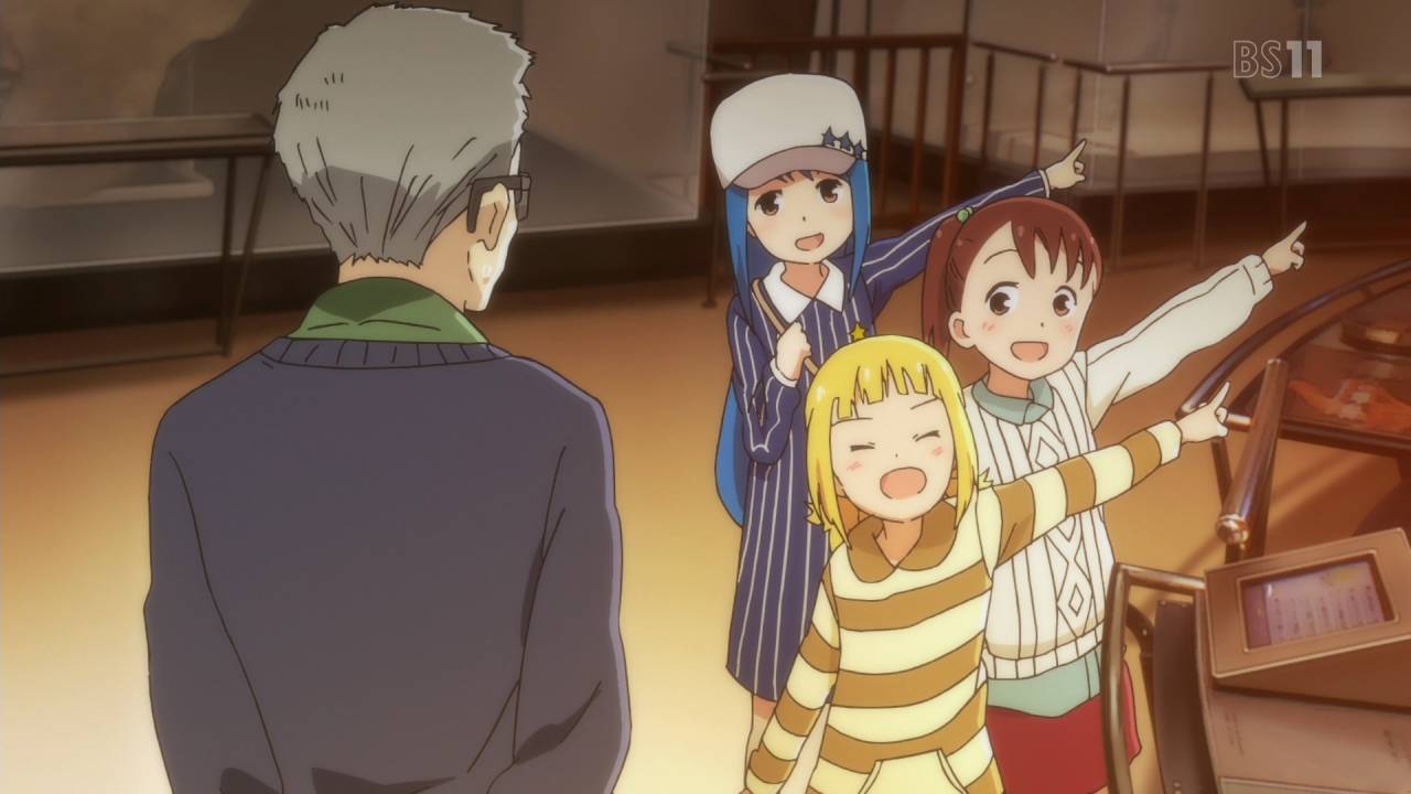 三ツ星カラーズ8話。A・Bパートで動物園に続いて今度は博物館に特攻。ボケ、ツッコミ、そして悪ノリ…でも残念ながら結衣のツッコミは正常に機能してないねw Cパートは福引き。ののかを言いくるめて福引き券を搾取www さらに通行人相手に難癖つけたり物理攻撃したりとやりたい放題…これはアカン。