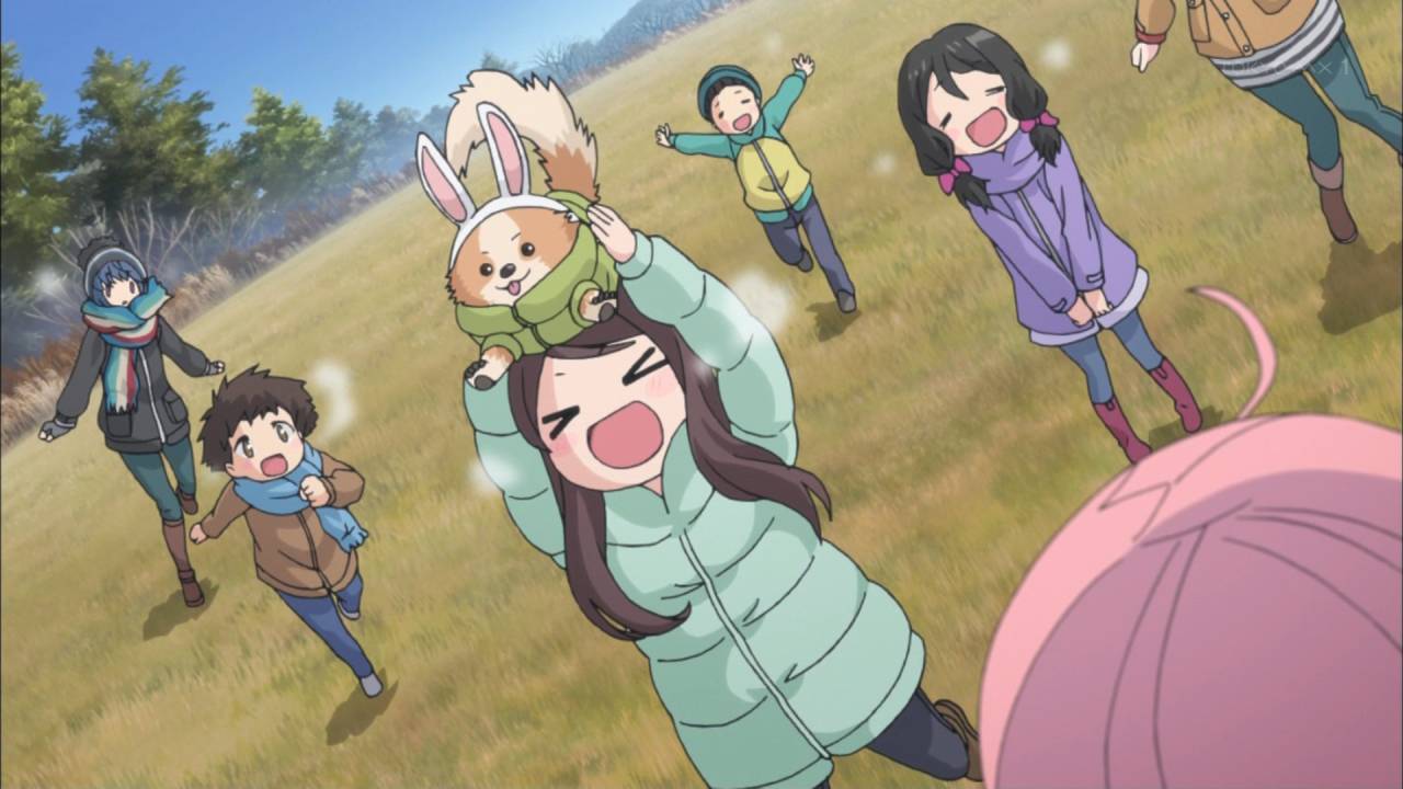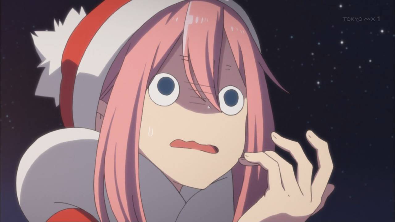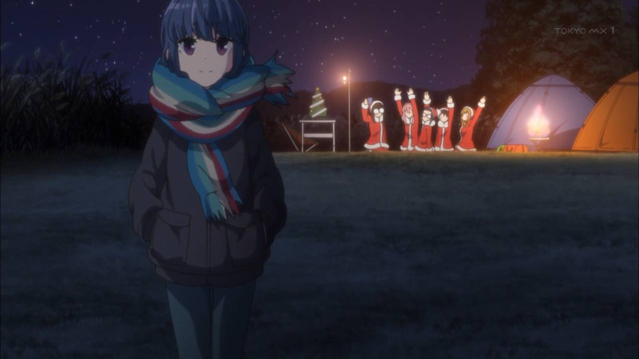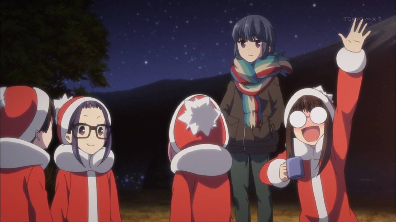 ゆるキャン△11話終了 秘密結社からサンタレンジャーに早変わり クリキャン初日、やっぱ皆楽しみだったようで約束の時間の2時間前に全員集合です ちくわを追って追いかけられてもう夕方、あおいが作った夕飯は最高級なお肉ですき焼きとか絶対美味い リンも皆でキャンプも満更でもないようだな