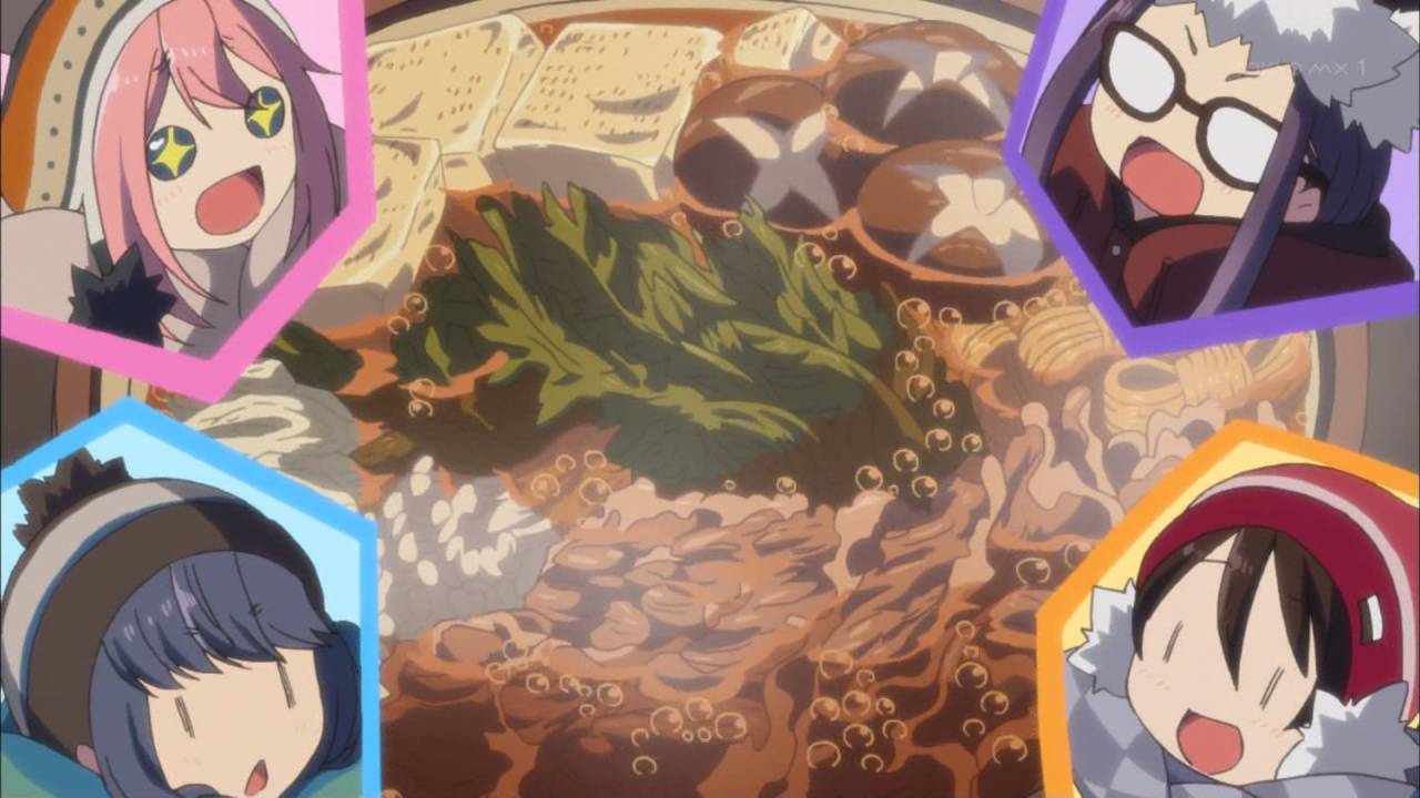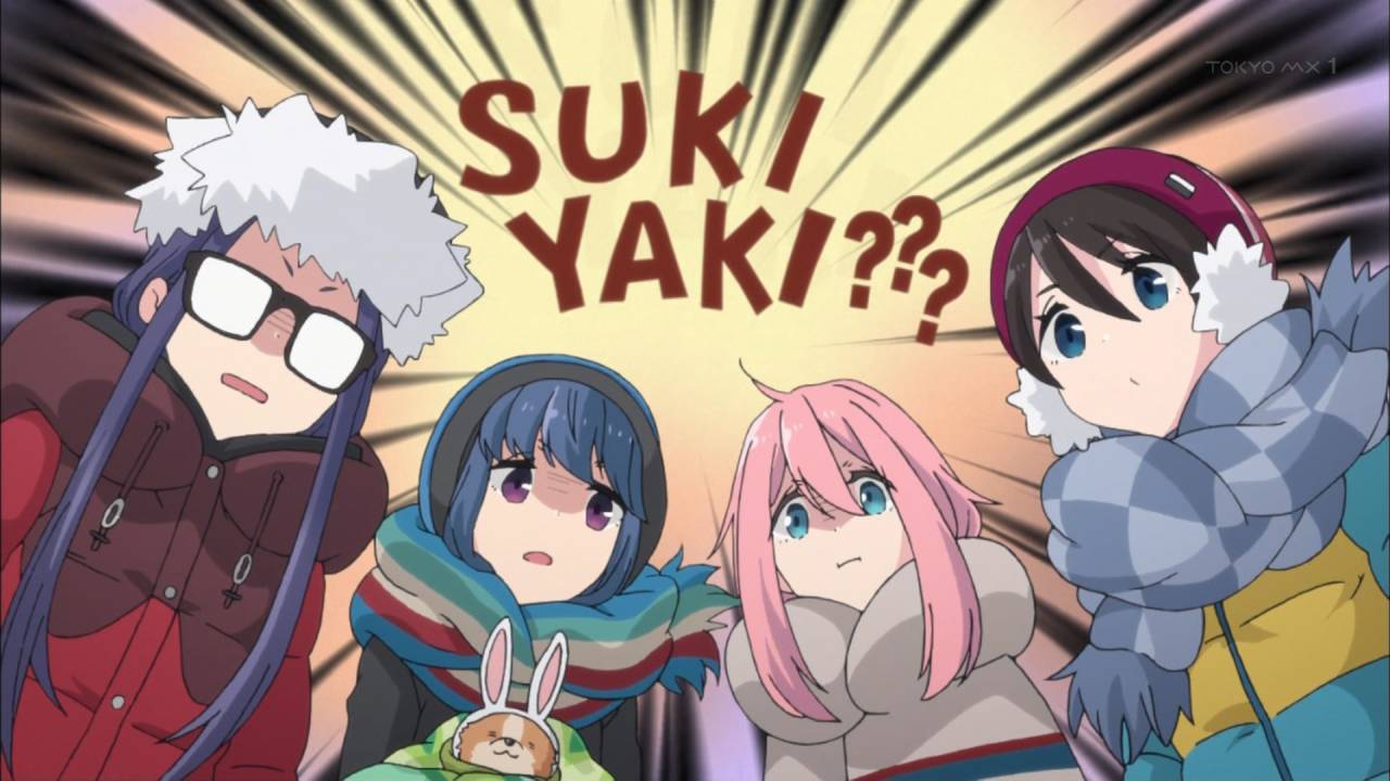 ゆるキャン△ 第11話観た。すき焼き回。すき焼き滅茶苦茶食べたくなりすぎる回だった。それにしても6人いて最初はわりと自由で、集ってからは食いまくりつつほのぼのとしてこれはリンちゃんも落ちますわ #ゆるキャン #tokyoMX
