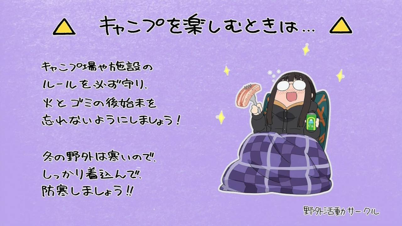 秘密結社ブランケットと年末戦士サンタクレンジャーの豪華二本立てという展開。本編チクワの存在が実に利いているw ソロでは味わえない大勢での楽しさを体感するリン。その雰囲気に魅了された様子。やはり楽しいよね。こういう話の感想は一言「最高!」とだけで良いな。#ゆるキャン