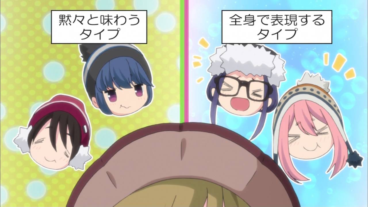 ゆるキャン△ 第11話。しまりん上半分苗字ワロタ。グビ姉飲むの早すぎだろ。とうとう斎藤さんがキャンプに参加!癒しやわ。あかん、すき焼き食いたい!