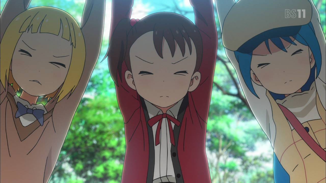 「三ツ星カラーズ」第11話:さっちゃんのエクストラバージンオイル・・・?(意味深)花粉症になったののかのカタキを討つべく、上野中の木を倒しにかかるクソガキ3人衆。上野の花粉症は撲滅できるだろうけど、地球の滅亡も早まるぞ・・・www それと、結衣のあの髪型、素でうんこだと思ってしまった。