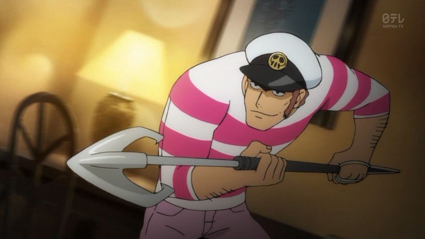 ルパン三世5期の2話ででてきた原作キャラオールスターズ、ユニオンママと釣竿を武器に使うヤツは見たことあるぞ