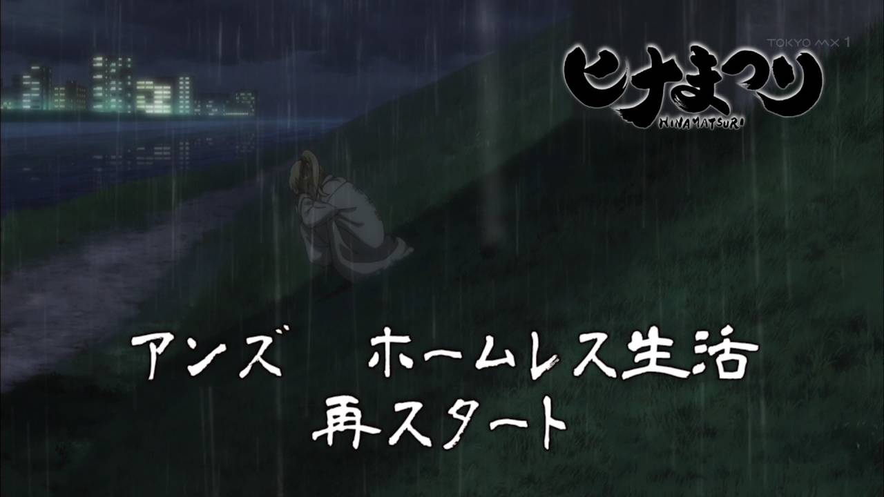 ヒナまつり2話終了 JCがマスターのバー行きてぇ…新たに別の世界からきたのはアンズ、新田達のシマで少女が別の組を倒した時点でもう嫌な予感しかしない訳でして、案の定ヒナの知り合いだったがこっちはいきなりホームレスですか さて女遊び再会の新田はバレてヒナ達とキャバクラって凄い展開w
