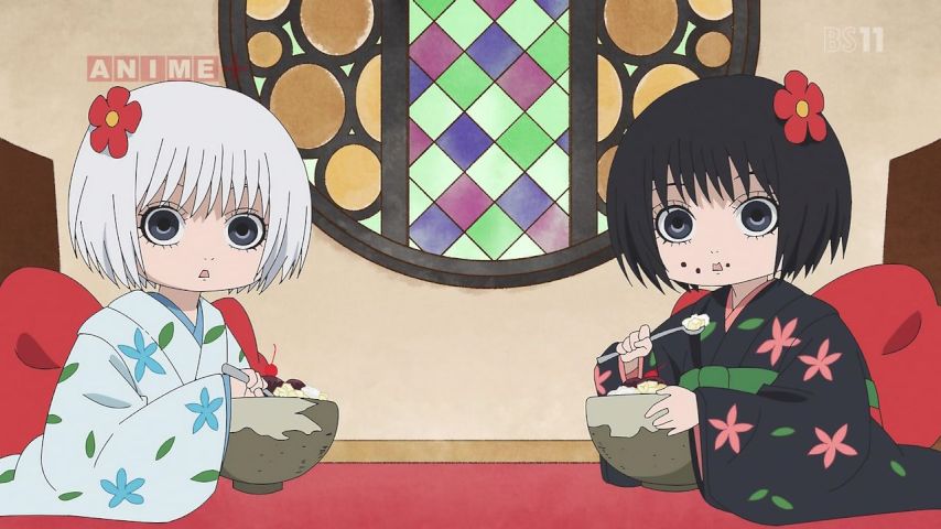 座敷童ツインズ、リリスコーデで市松人形風からフランス人形風にっ!! #鬼灯の冷徹 #hozuki_anime #tokyomx