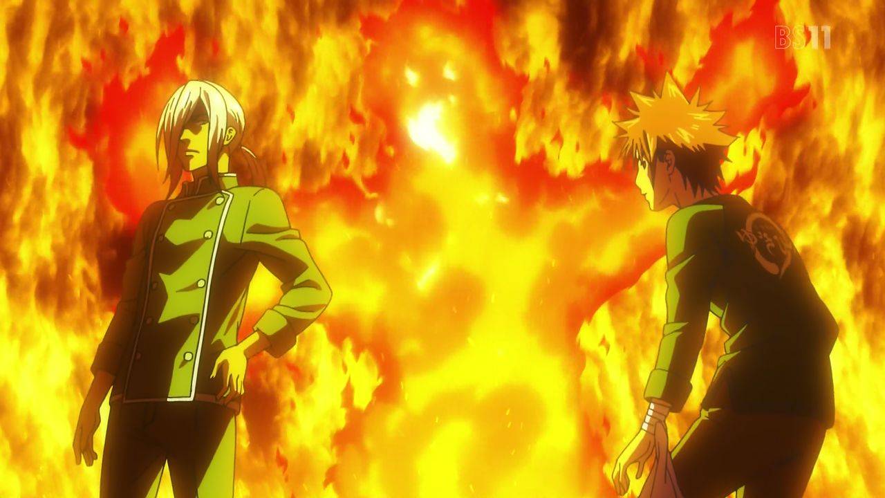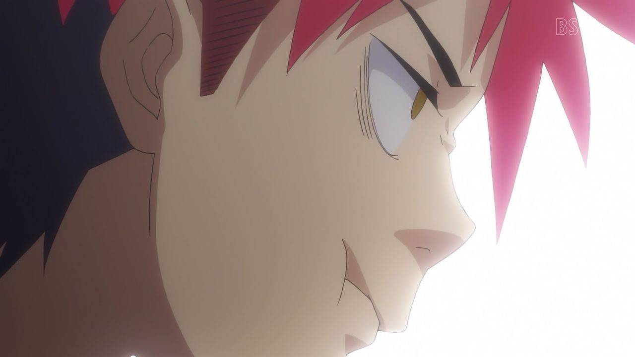 十傑として登場した葉山の壁。なかなかの“染まった感”が良い。題材の熊肉に苦戦する創真に意外な助っ人久我の登場。本編的意味で丁寧に創真を勝利へと導いている演出が利く。ただ葉山、久我も胡散臭さを隠さず逆に色濃く匂わしてきた点が面白い。#shokugeki_anime
