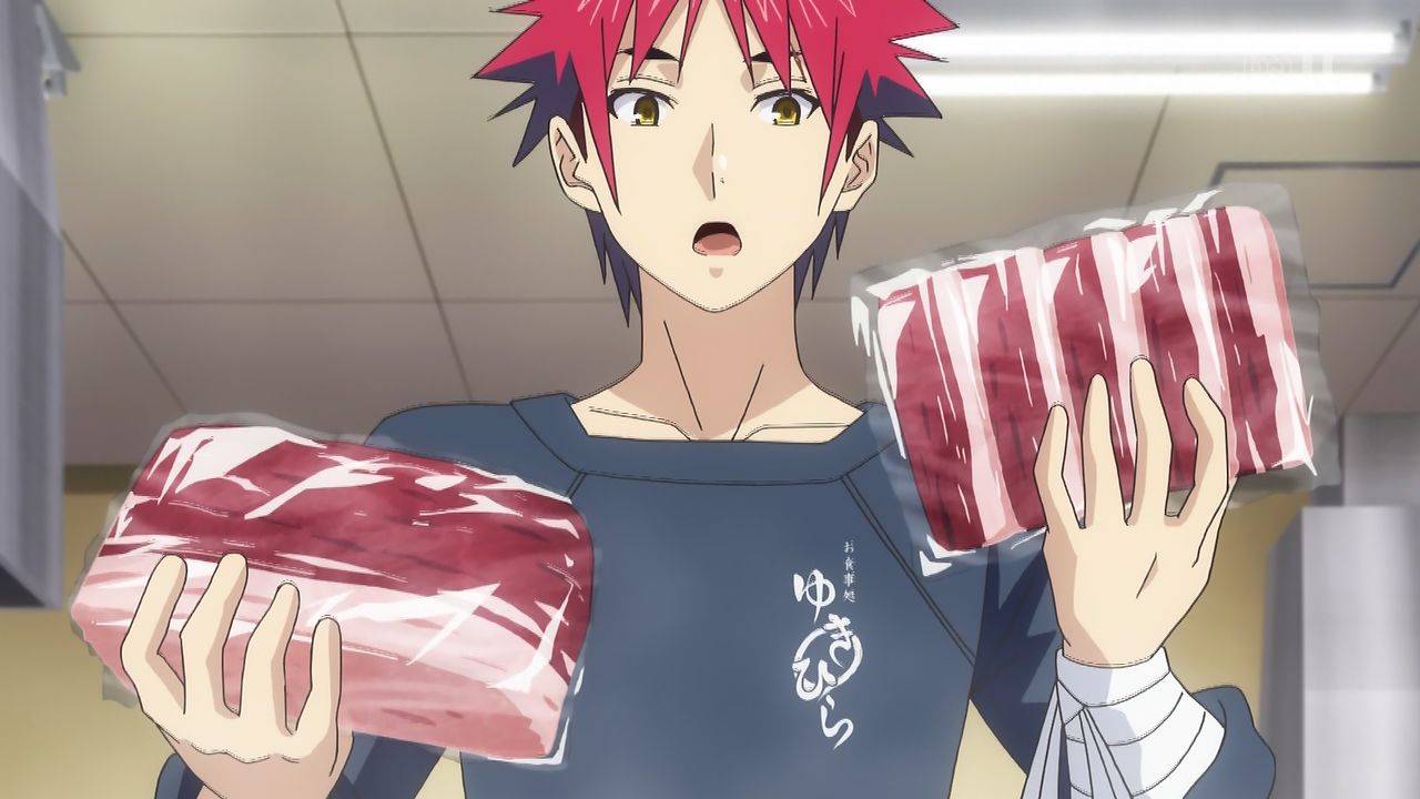 #食戟のソーマ 三期16話。葉山はえりなとともに一年生ではトップクラスだが、それでも十傑入りは驚異的なんだな。創真は臭みの強い熊肉でスパイスが得意な葉山と…臭みを消すだけでも一苦労して…それを塩振って生で(違う漫画です)