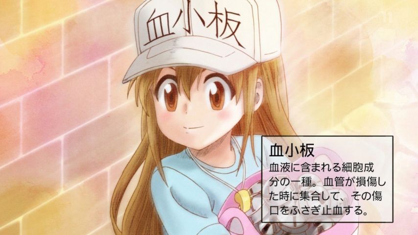 はたらく細胞2話!可愛いよ血小板ちゃん可愛いよ癒されるー!それはそうとすり傷1つで体の中があんな大変なことになっていたなんて・・・ごめんよ私の体内の細胞たち・・・からだ大事にするよ。あと1146番以外の白血球さんたちが割と怖いwww