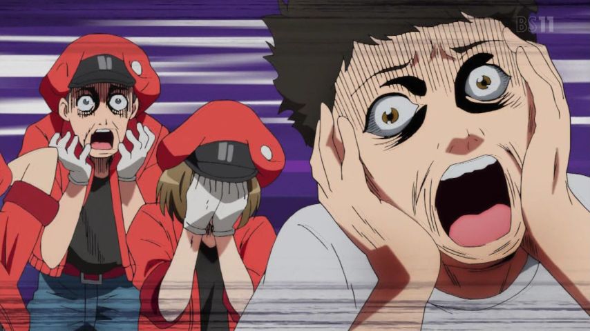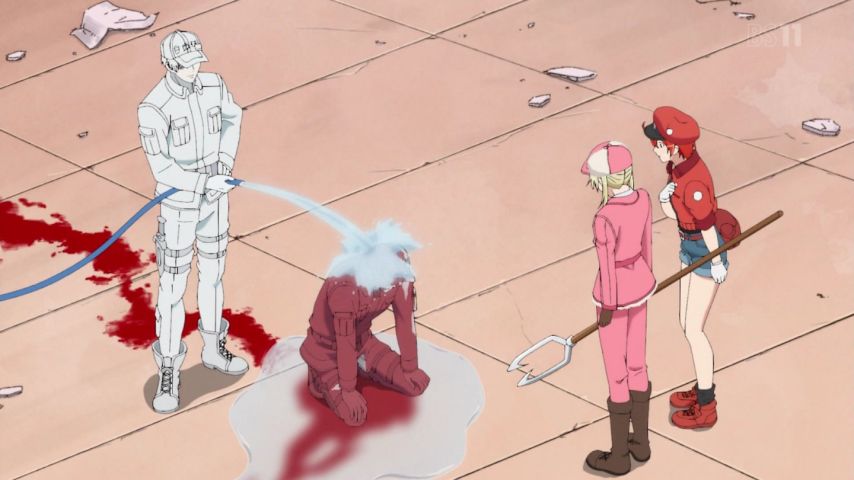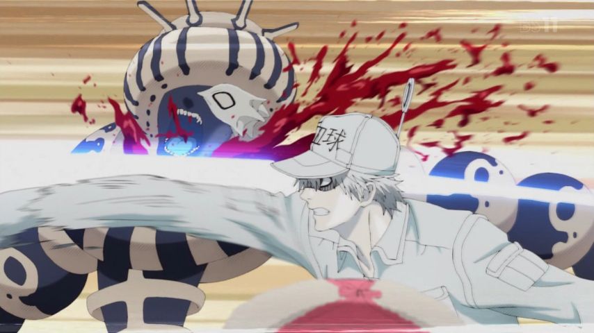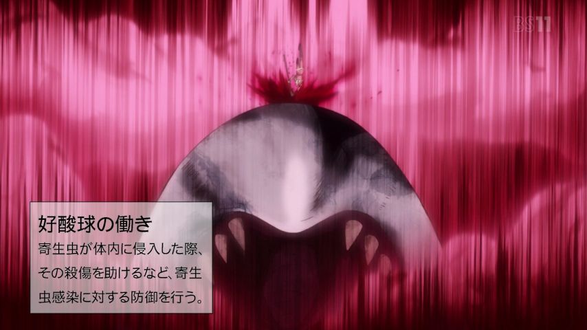 『#はたらく細胞』第4話。この出血量……相変わらず深夜アニメの限界に挑戦しているな、#ゆらぎ荘の幽奈さん とは別の意味で。アニサキスを竜騎士ジャンプで倒す好酸球かっこいい。テレテレな様子かわいい。中二ポエムを呟いていたようにしか見… https://t.co/bjefQrkqdW