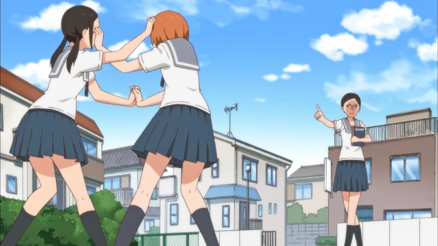 ちおちゃんの通学路 5話。トイレ我慢限界の時に跳んだり走ったりはあかん。妙に共感してしまいました。まななっちおの悪ガキ感。風紀委員の桃さんまで染められていきます。瀬戸山先輩たしかに破壊力やばいな…… #ちおちゃん