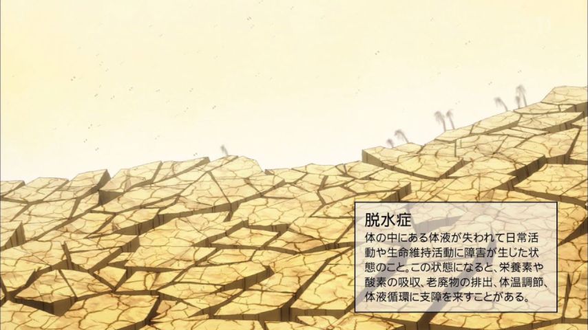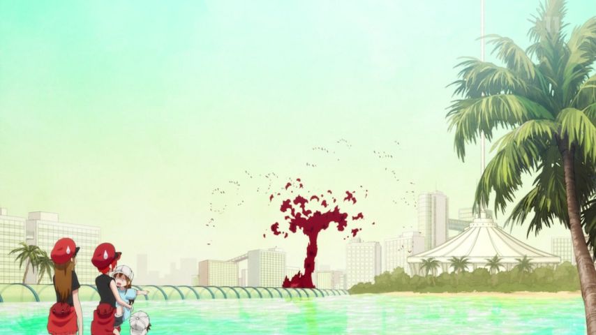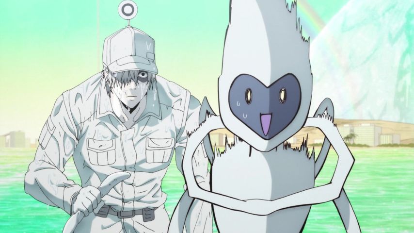 はたらく細胞、11話。熱中症で世界の終わり。地上に生きる者共にはどうすることも出来ず、天からの奇跡によって救われ世界が豊穣に満ちる辺りの描写が完全に神話。体内の細胞がどれだけ頑張っても、どうにもならない現実を思い知らされる感じもする。熱中症対策は大事です。