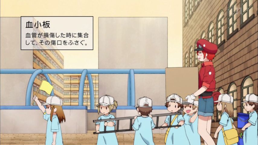 #はたらく細胞 12話。…ざーさん赤血球は良い人だけどちとポンコツ、後輩は…サブタイのせいか死亡フラグが。出血性ショック、…頭部に生命に関わる怪我と言ってたな…頭打ったのか。かなりの重大事、指示出してのは免疫系とは別の人たちみたいだな。