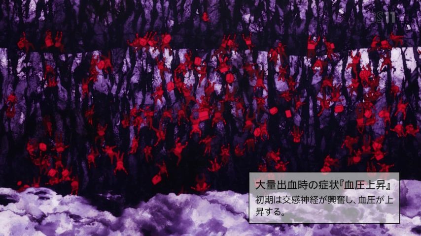 「はたらく細胞」#13-出血性ショック後編で最終回。血球達は傷口に吸い込まれ消え。肝座ってる赤血球と後輩ちゃん。道まで過酷だ傷口付近の血管w 血圧上昇続いて体温低下、走馬灯が。訛ってる赤血球達は輸血できたのか献血の光景も壮絶w あ… https://t.co/5rVVqJiwmP