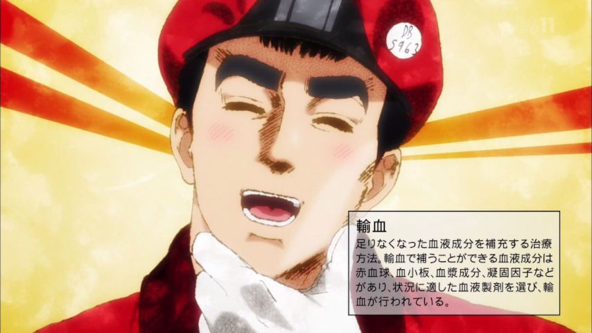 はたらく細胞、輸血wwwこういう展開だろうと想像はしてたが全然別の地域の人の血液だったか…wいやー献血の重要性が分かる素晴らしい最終回だった…赤血球の成長を感じられたし勉強にもなるし全世代におすすめ出来る良いアニメだったな。