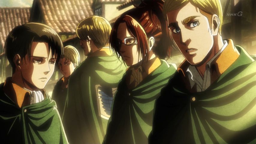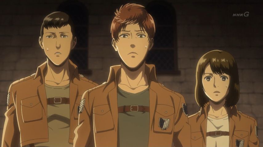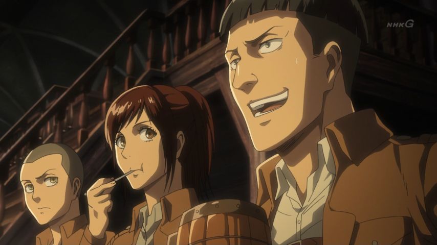 進撃の巨人48話 調査兵団の皆さんの会話いい…意外と普通だったりするところがまたいい いろいろありすぎてまだ半年しか経ってないことにびっくりよ 濃密すぎる