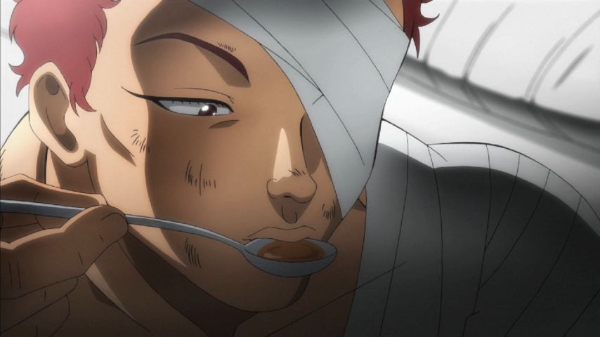#バキ 18話の作画がヤバくて滾る。烈祭りや!烈、対、ドイル。情け容赦ない中国拳法(武器術含む)の嵐から、ドイルの献身を受けての気合水渡り!!手料理!いい笑顔!名シーンの数々を最高の作画で観れるしあわせよ。