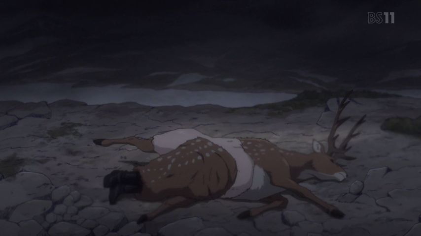 「ゴールデンカムイ」17話。薩摩弁はさっぱり分からん。字幕があって助かった。漫画のキャラってなかなか死なないことが多いけど銃弾一発で死んじゃうこともあるんだね。鹿の腹の中で強風をやり過ごすってやってみたいような必要ないような。
