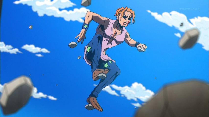 ジョジョ8話。敵のスタンドかなり応用力の高いスタンドだったな。物を固定させることで空中を移動することさえできるんだもんな。ミスタとは特に相性の悪いスタンドだったけど最後まで冷静に徹しての逆転かっこよかった。