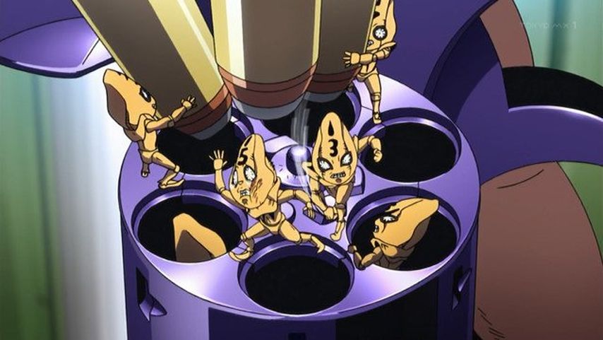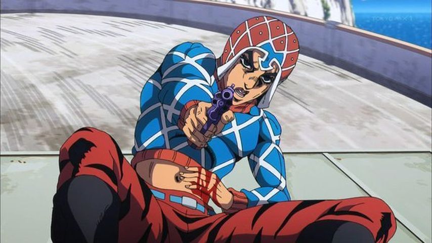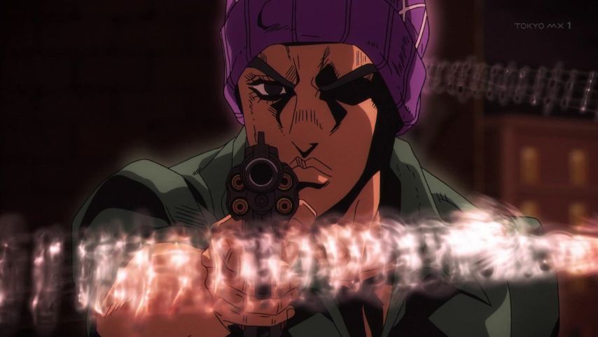 ジョジョ5部8話。ミスタの過去、こうして見ると銃を持った時の冷静さは天性のものだわね。クラフトワークの能力は地味だけど使い勝手が良いよね。固定能力解除ん時のピストルズが弾丸にゾロゾロ乗り込んでる可愛い(笑)運転手は可哀想でしたね(笑)