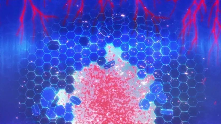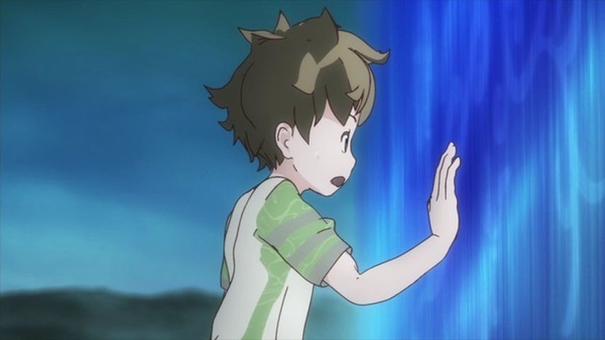 #ケムリクサ 9話 青い壁の向こうにビルの影。わかばの洞察力の答えが、りんの睡眠中に現れた、りょう、りょくの姿が意味するもの。壁の向こうは平和なのか。まだ見ぬ世界の謎に一歩踏み込んだ様に映る。