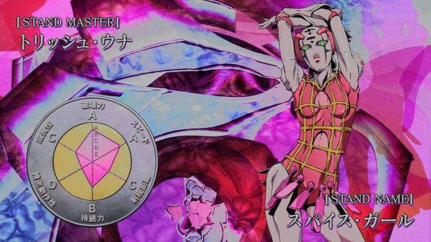 ジョジョ25話。トリッシュとスパイス・ガールかっこよくてかわいい!!口悪くなるのも良い〜