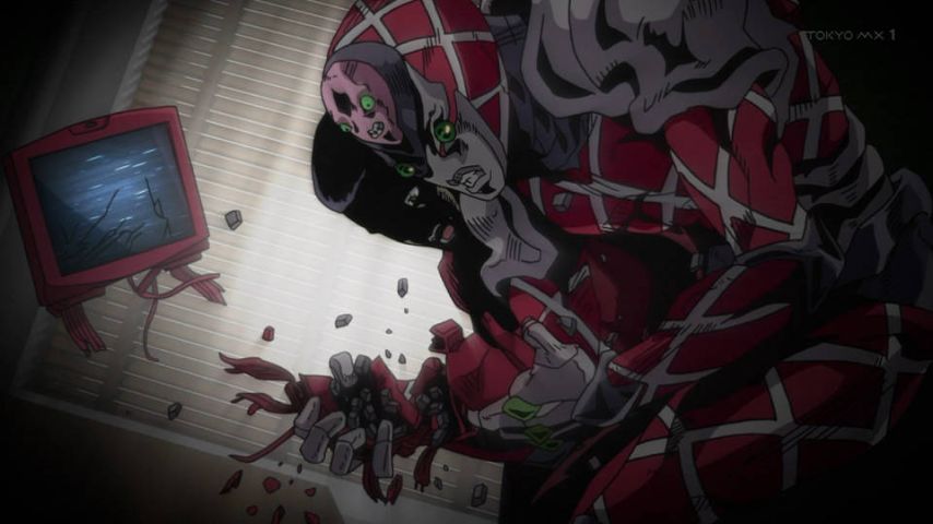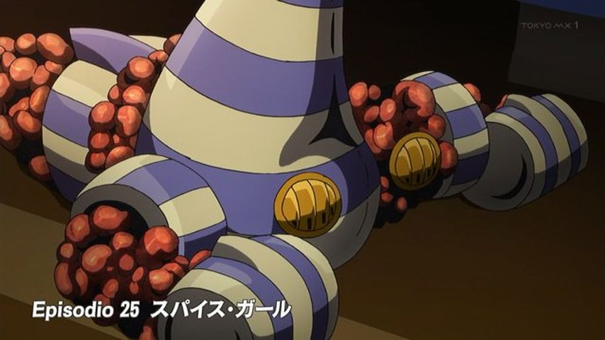 MXTV「ジョジョの奇妙な冒険 黄金の風」第25話「スパイス・ガール」観た。無敵スタンドの倒し方の回。倒し方はない。が、やりようはある。こういう頭脳戦は好きです。エコーズのように自我を持つスタンドスパイス・ガール登場。強いが口が悪… https://t.co/3tIy8ngXhR