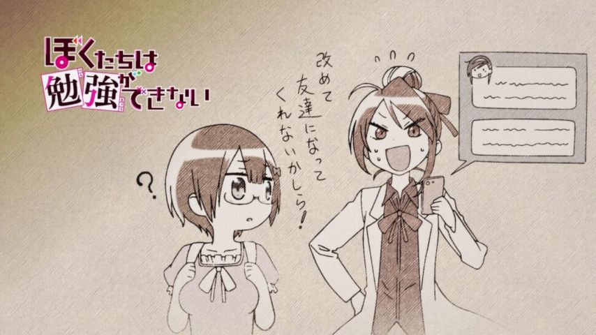 寝る前に、ぼくたちは勉強ができない12話を見た。うるかかわええ!まぁあの流れだと唯我くんは練習かと勘違いしちゃうわな!ぺたんこで認識されている文乃ちゃんに草。#ぼく勉