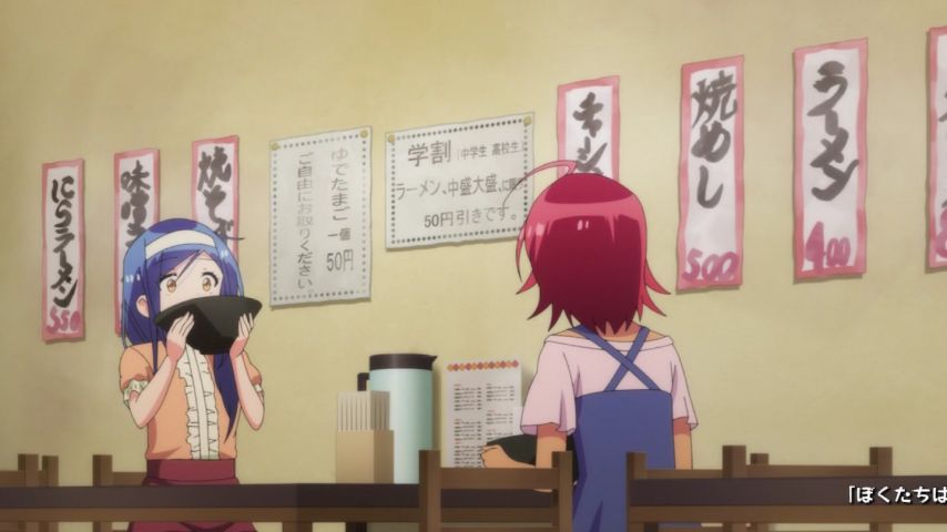 ぼくたちは勉強ができない 12話。うるかちゃん回。でも前半は文乃っち回とも言えるのではないかな。ダイエット中だけど大胆に器を持ってラーメンのスープを飲む文乃っちはかわいい。関城さんとのくだらないラインもいい……仲良し……仲良しはいい……。着衣びしょぬれに定評のあるアニメ。
