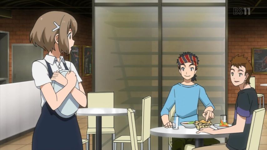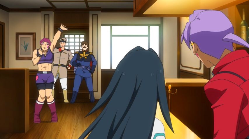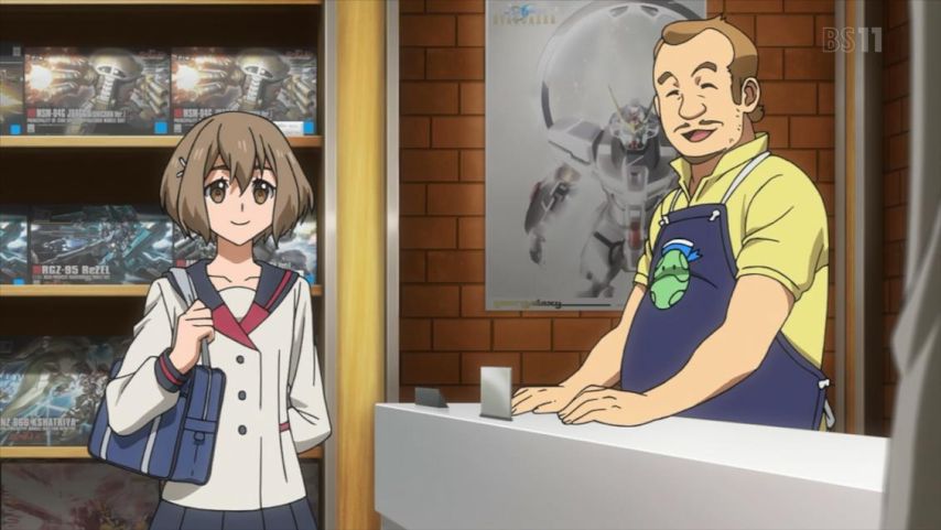 「ガンダムビルドダイバーズRe:RISE」2話。ガンダムカフェでバイトを始めたヒナタはガンダムには疎いが、他のスタッフやヒロトのフォローがあればやっていける。認識をぴったり合わせる必要はない、そういうお話。