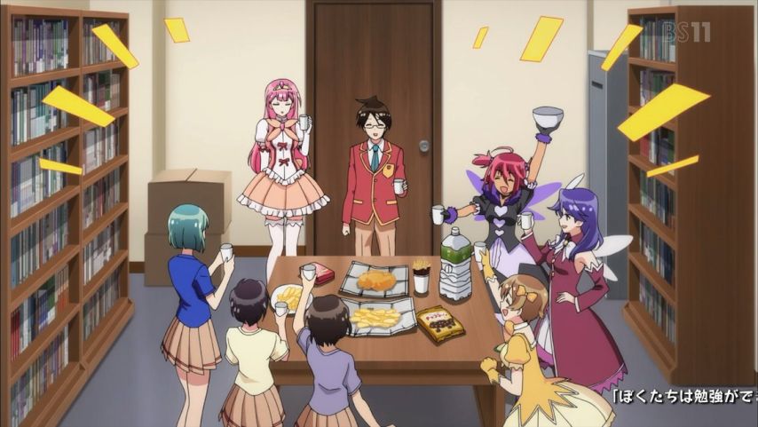 #ぼく勉 12話。謎のヌル2CGw。だがチョッと待て、先生がコスで舞台出たのは衣装を脱ごうとしたら破れそうだったからでは?ついでのラキスケも付属。で中盤のけいおんは紙芝居w モブは止めでOKなのね。細けー所が目的アリきで雑な展開に。次話で終了だが当然入試までは行かなかったなw