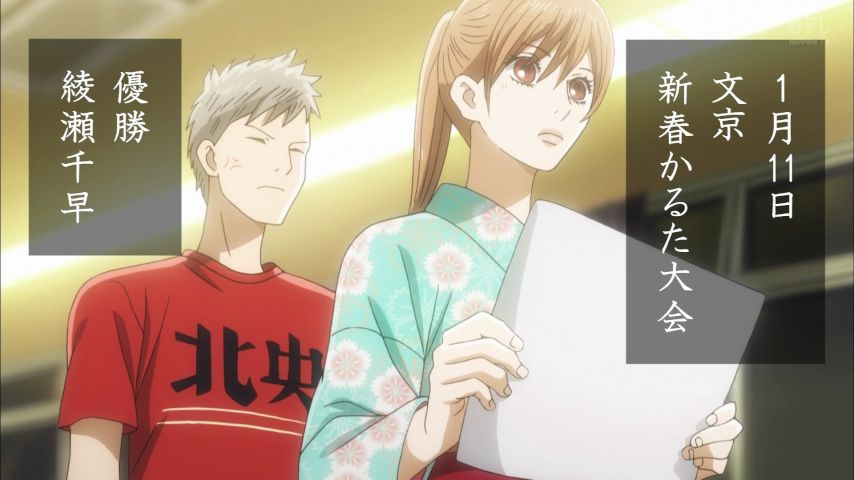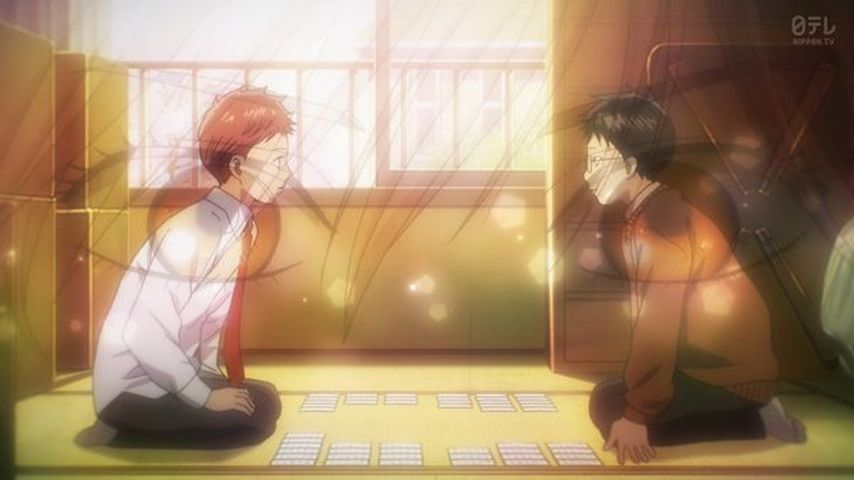 『ちはやふる3』21話。ヒョロくんの彼女も百人一首に詳しかった。てか、このアニメの裏テーマは「ヒョロくんA級への道」やな。そして、太一は新に勝てない運命なのか #ちはやふる