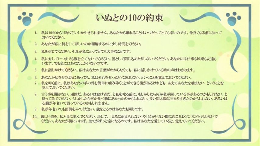 犬の十戒を様々なパターンで作ったのはいいわ~。漫画家の十戒で笑わせて、パパの十戒でホロッとさせる。このさじ加減だよ!!