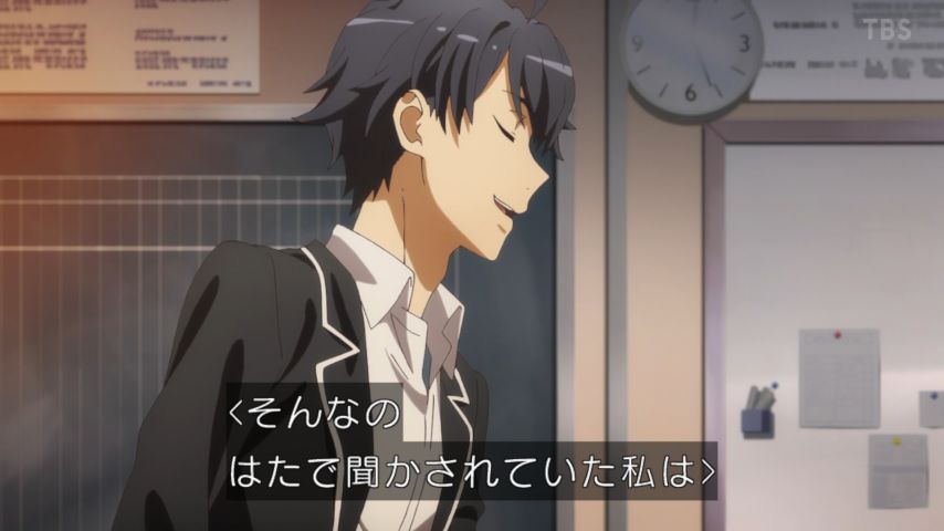 録画した「俺の青春ラブコメはまちがっている。」第5話「しみじみと、平塚静はいつかの昔を懐かしむ。」観た。難解な痴話喧嘩の回。平塚先生のナイスアシストで原点に戻る。「もらって!」が切実wでも、もらっても良い。端で見せられるいろはが怒… https://t.co/JlipGPib2K