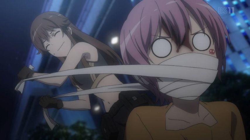 超電磁砲3期23話。リーダーの一人コントが冴える。したたかぶってる小物リーダー可愛いね…マスクはない方がいいよ。リーダーの食蜂御坂の耽美百合イメージに笑う、リーダーもそういう趣味が?薬の子もいい味出してスカベンジャーの好感度が上昇。巨大化ドッペルゲンガーはいい感じにラスボス感だな