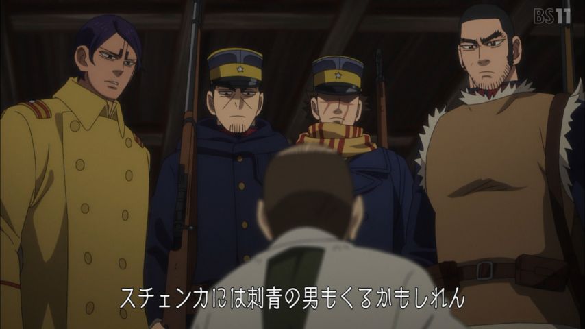 アシリパさんを探す杉本たち。樺太へ。谷垣の写真めっちゃある〜笑 しかも全部独特。 そしてスチェンカ。すぐのせられて全員参加すんのおもしろかったです。しかも次回もスチェンカ!? やっぱおもしろいから原作読みたいな〜〜〜〜 あとED曲なんかすきでした。