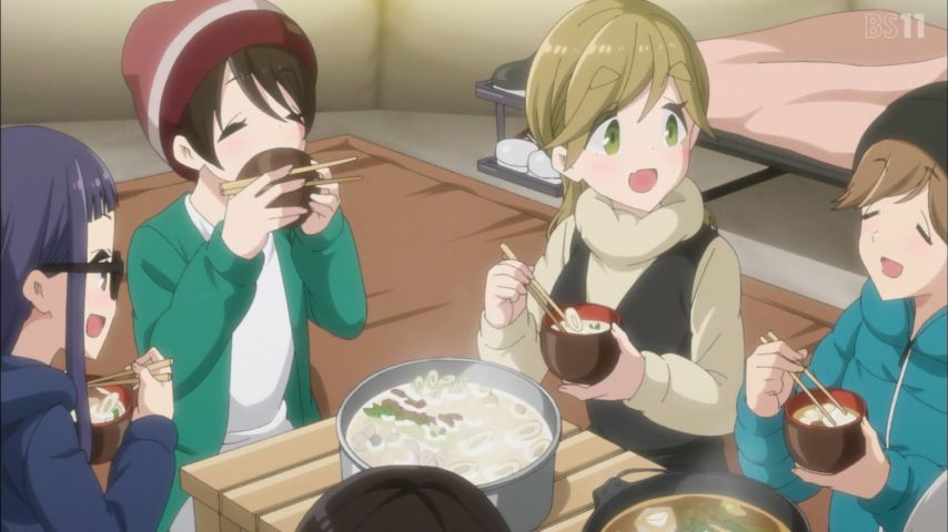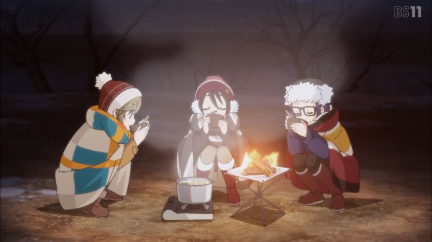 ゆるキャン△2 6話感想。冬の1000m級はアカンな。ストーブ無ければ死。リンと先生はいい人やー。JK3人と鍋パ、ゴクリ。犬子でかすぎだろ。千明もよく走った。恵那は沁々噛み締めちゃうタイプですね。 #ゆるキャン