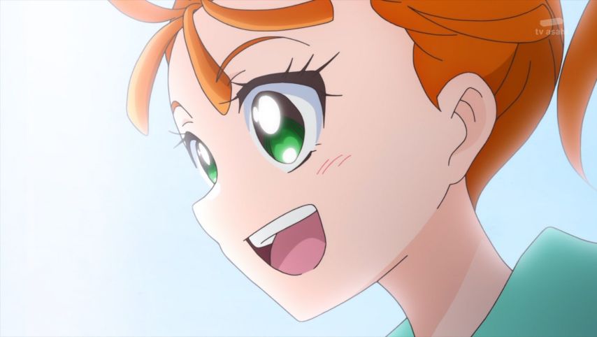 自信の無さそうなみのり先輩。プリキュアまでの道のりが、普段の自分とかけ離れていて驚くばかり。小説を書く地味な先輩が、まなつとの関わりでどう変わるか。まなつの距離の無さが先輩の心を傷つけないか不安でもある。それにしてもパパイアは垢抜けているな。