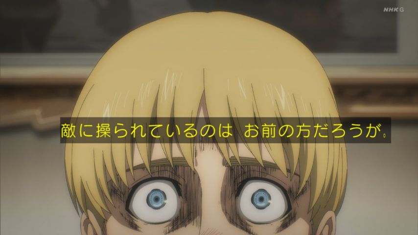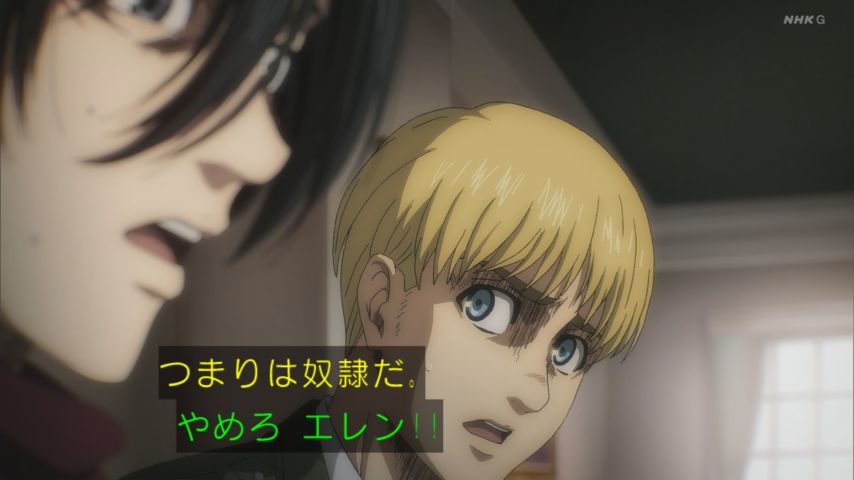 結局エレンは何しに来たの?この視聴者側の疑問をちゃんと聞いてくれるアルミン、マジ有能。腕力最弱でも胆力は作中最強。兵長より上じゃない?
