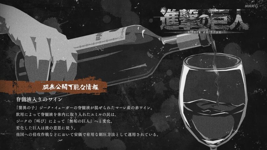 ヽ ノ |_|) ワインのセリフから準備は整ったことを確認してからの巨人化