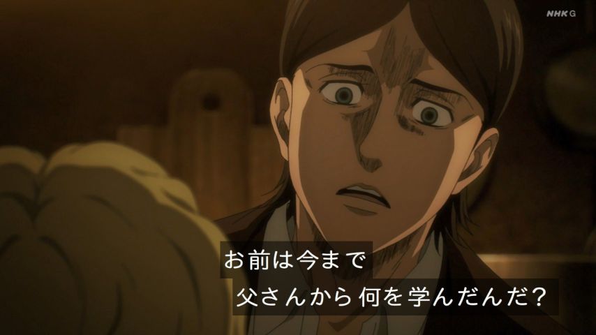 アニメ進撃の巨人74話冒頭、グリシャの「お前はここから出たいと思わないか?」という問いかけに対してジークが「うん、出たい。」って言うけど目が斜め下を向いてることから、これは本心ではなく親の期待に応えるために言わされていることだと分… https://t.co/jhbjM0Nats