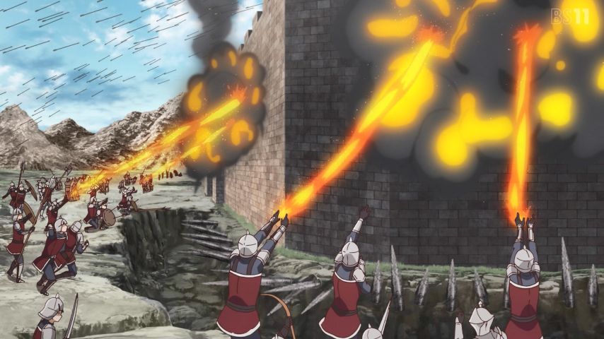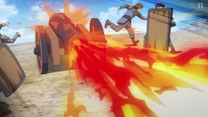「現実主義勇者の王国再建記」10話を見ました。世界観とか軍備とか戦略のせいもあるけど戦争回にしてはなかなか地味。死者どころか負傷者もいなさそうな感じ。魔法・弓矢・大砲使用可のサバゲーかよ。地滑りの方がよっぽど脅威だったな。「めちゃめちゃ陣形じゃ」みたいなのが見たかった(ゆゆ式脳)。