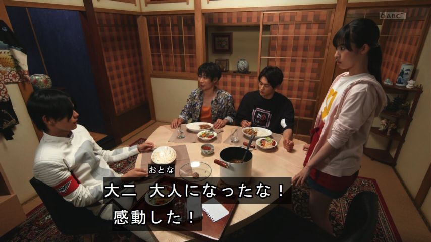 #仮面ライダーリバイス 6話。カレーに餃子。「みよしの」かっ!と速攻で全道民が突っ込んだw誰だよ提案したの。シゲだろwww今週のダメ父ちゃん、急に出来る人になったと思ったら全然そんな事は無かったぜ!で、ぶーさんは何者なの?