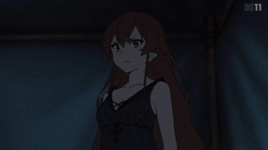 #無職転生 22話。変わり果てた故郷に、幸せな思い出を巡らすルディの寂しさ。役目を終えたルイジェルドとの別れは、勝ち気なエリスの固く結んだ口元に泣けたわ。家族も失い妾に堕ちようというエリスが、最後にルディと結ばれたいと願う切なさ。そして朝までに彼女の心に起きた葛藤を思うと胸が詰まる。