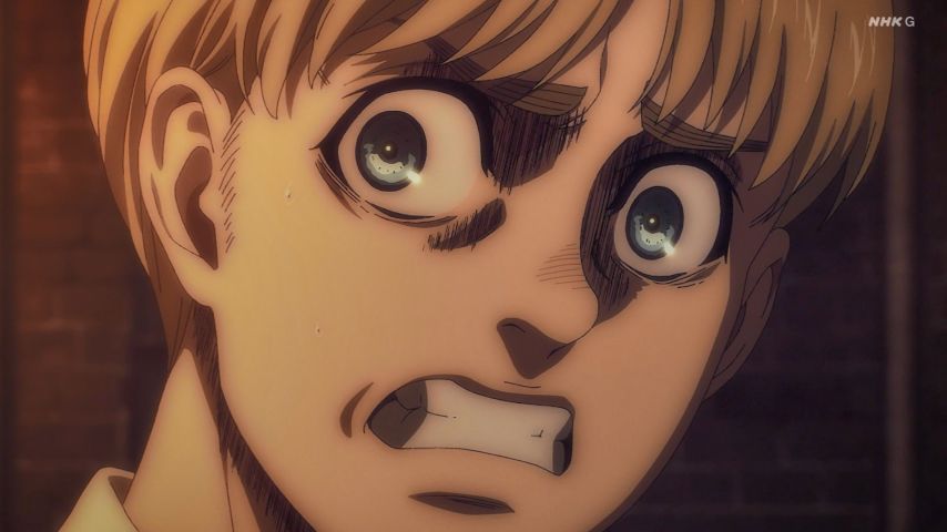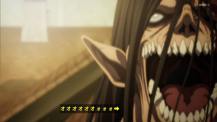 再開初回ただただ圧倒された。制作陣のエネルギーがびんびん伝わってくる。アニメってかけられた手間が如実に出てしまうものなんだなあ。醜く恐ろしい戦場の描写にbravo。このバイオレンスを地上波で放映できる自由があることに感謝。はたしてアルミンの言葉は慧眼か幻想か?